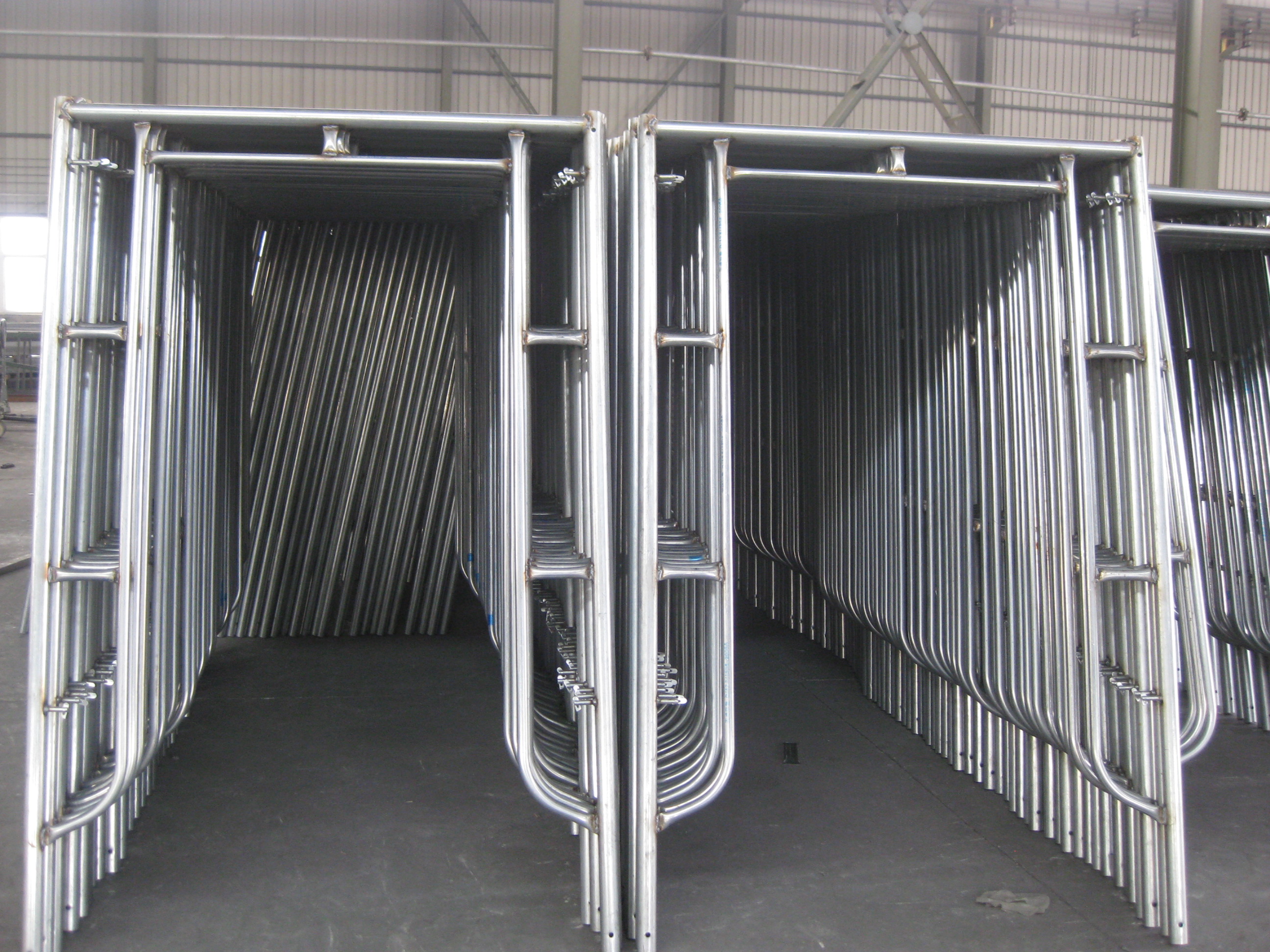 門式鋼管架在現(xiàn)場(chǎng)主要是為施工人員搭建的各種支架,門式鋼管腳手架是一種工廠生產(chǎn)