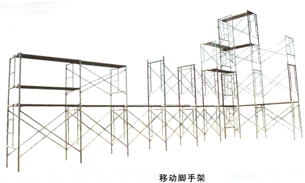 移動(dòng)腳手架種類中國(guó)現(xiàn)在使用的用鋼管材料制作的腳手架有扣件式鋼管腳手架、碗扣式鋼管腳手架、扣盤(pán)式腳手架、承插式鋼管腳手架